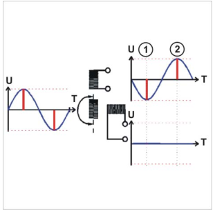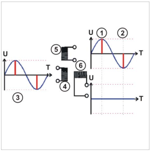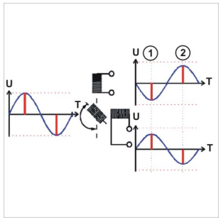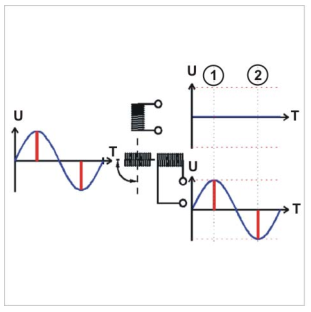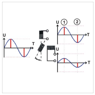 感應(yīng)引起的電壓在兩個測量點 (1,2)接受探測和評估。